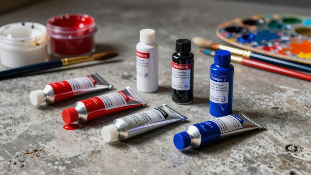 Consider freeze/thaw stable acrylics if you’re working in variable climates. These formulations won’t lose performance quality during temperature fluctuations, making them versatile across regions. You’ll also benefit from non-toxic, safe formulations that don’t compromise durability while expanding accessibility for artists of all ages.